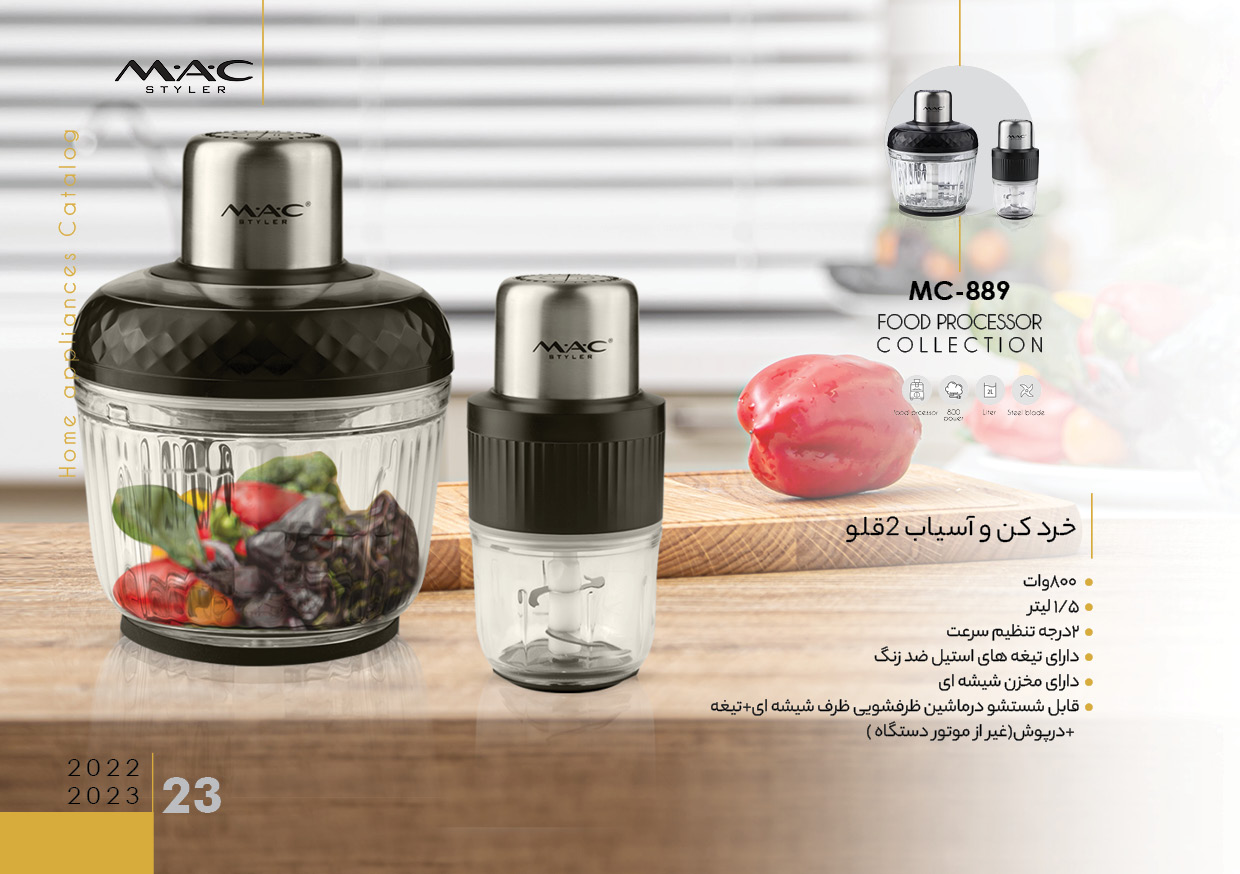 اگر به دنبال یک دستگاه چندکاره، قدرتمند و جمع و جور برای خرد کردن و آسیاب کردن هستید، خرد کن و آسیاب ۲ قلو مک استایلر مدل MC-889 بهترین انتخاب است. طراحی حرفه ای، عملکرد سریع و کیفیت ساخت بالا این محصول را به یکی از محبوب ترین گزینه ها در آشپزخانه تبدیل کرده است.